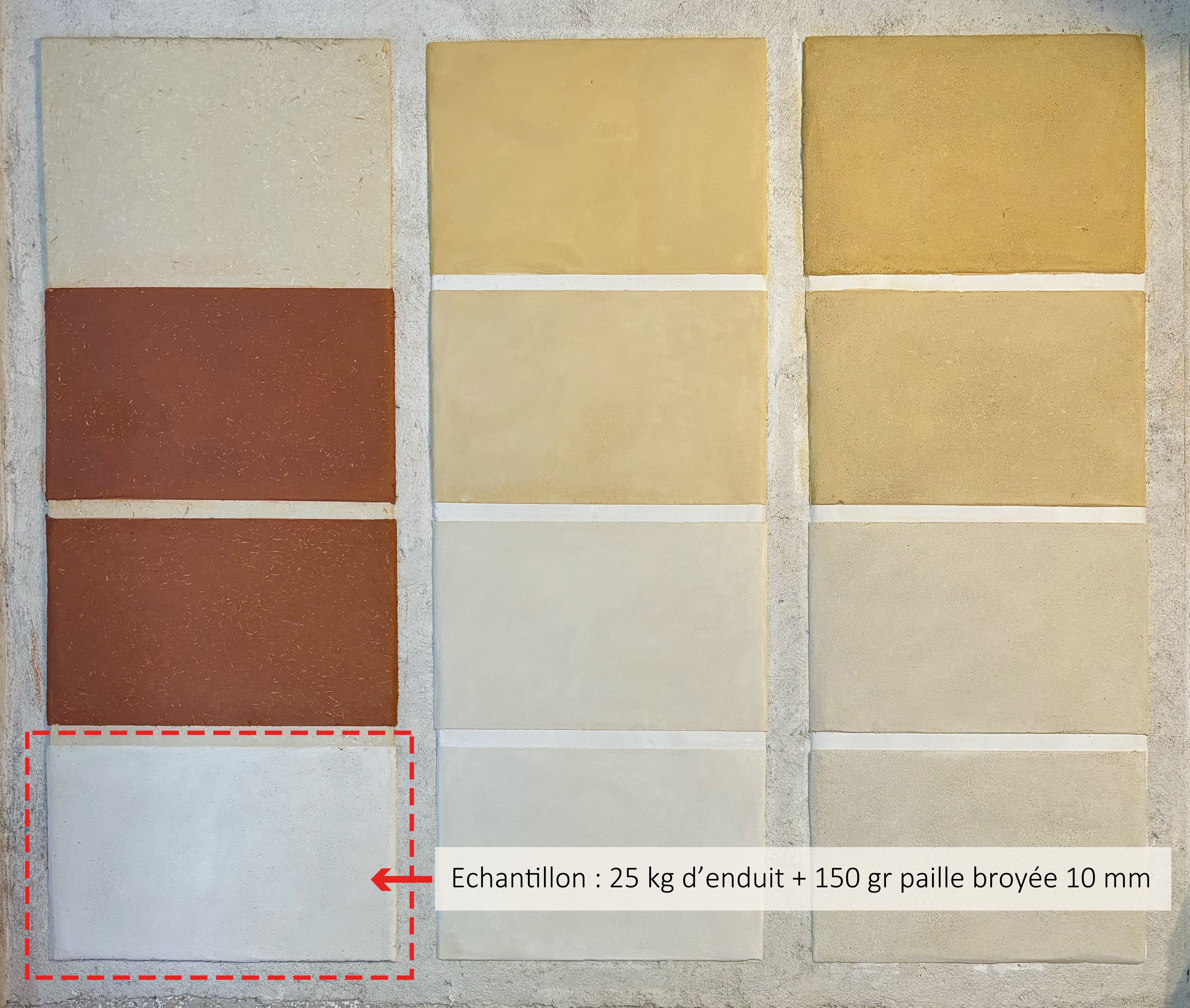 Aspect finition : lisse, granitée, structurée (possibilité de rajouter de la paille pour un rendu différent, voir photo ci-dessous)